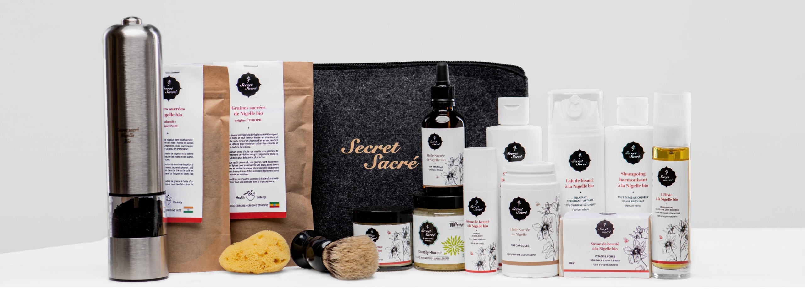 Secret Sacré est une marque de haute cosmétique biologique spécialisée dans les produits à base de nigelle, une huile réputée depuis l’Antiquité pour ses bienfaits sur la peau et les cheveux. L’entreprise propose une gamme variée de soins, incluant des crèmes, huiles et gélules, tous certifiés biologiques.